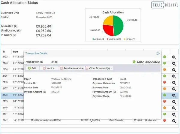 Granular dashboards provide insight on allocation status and visibility of all payment information in one place giving accounts receivable teams information needed to action queries and exceptions.